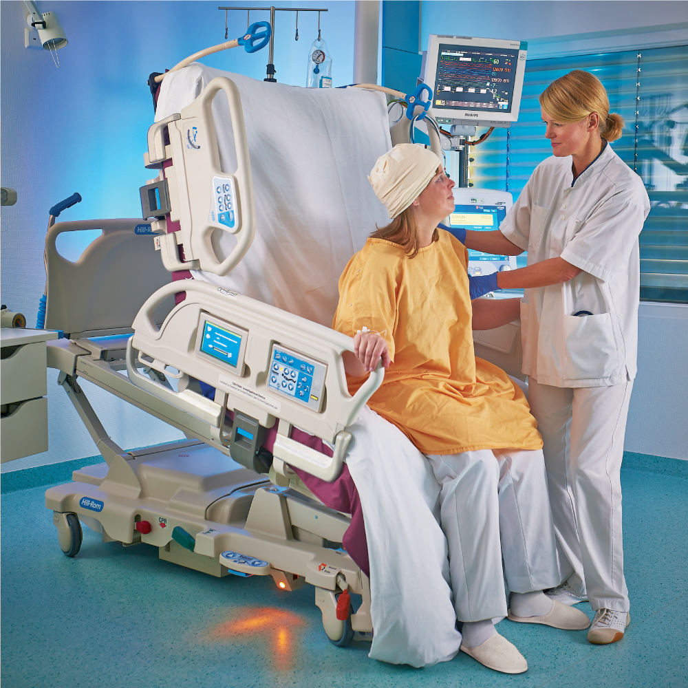 A fin de acompañar a los pacientes en la movilidad temprana, la cama Progressa ofrece opciones de armazón flexible para mover mejor a los pacientes dentro y fuera de la cama, como la opción FullChair®, la salida lateral y las posiciones de salida de la silla.