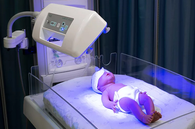 La seguridad en el cuidado de neonatos debe ser la máxima prioridad. El sistema de fototerapia con LED neoBLUE garantiza una fototerapia intensiva y segura, minimizando el riesgo de daño en la piel y pérdida de fluidos. Los LED neoBLUE no emiten niveles significativos de radiación infrarroja (IR) ni ultravioleta (UV). Con un simple toque del interruptor, se puede cambiar de fototerapia estándar (15 μW/cm²/nm) a una intensiva (35 μW/cm²/nm).
