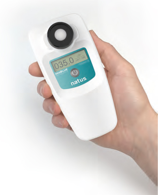 Puede realizar mediciones de manera sencilla con solo pulsar un botón al mismo tiempo que realiza ajustes en la intensidad de la luz. Utiliza el radiómetro neoBLUE como ayuda para determinar cuál es la altura adecuada de las luces situadas por encima del bebé. Verifica que se suministra la irradiancia adecuada.